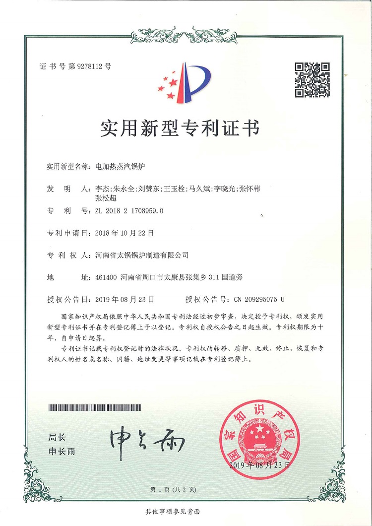• 電加熱鍋爐專利